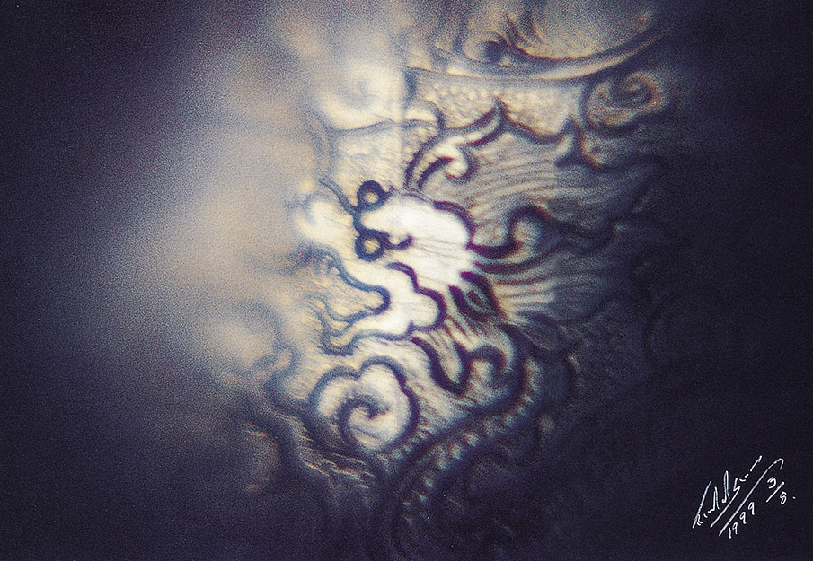 我在智慧林拍的,很久很久以前了,1982 或 1983。一件銀器,非常小,我拍的是龍的臉。我想是某個東西的蓋子的頂端,上面有雕刻。線條向細繩。整個面積小於一寸。