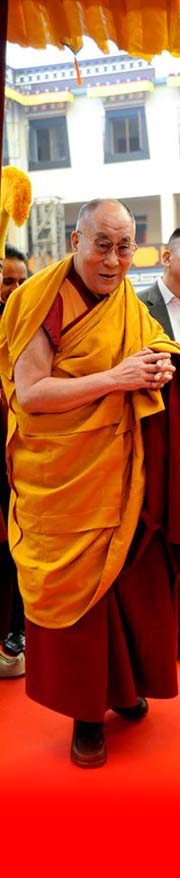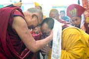 Guru Vajradhara gave a welcome speech starting with past and present great Bodhisattvas and manifestation of H.H Dalai Lama with details of his responsibilities, his lineage and connection between his lineage with His Holiness Dalai Lama up to the present day and expressed his heartfelt welcome to His Holiness. Following this, two Khenpos made presentations on Philosophy and introduction of Palpung Sherabling Monastic seat, medicine, astrology, science, language and Sanskrit. The Minister of Religion and Culture in the Central Tibetan Administration, Pema Chinjor and Speaker of the ATPD, Mr Penpa Tsering, both spoke highly about Guru Vajradhara's activities in the Buddhadharma.