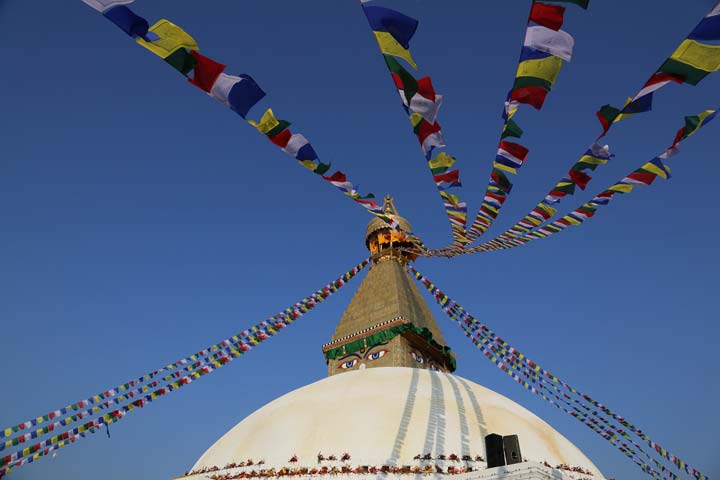 The Nepal earthquake on April 25th, 2015 severely damaged Boudhanath Stupa, now an UNESCO site in the Kathmandu Valley, where the spire was cracked. As a result, the whole structure above the dome had to be removed.