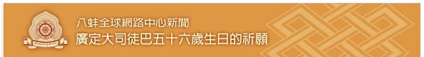 全世界和八蚌智慧林相關的寺院和中心,在2009年3月4日,也就是傳統農曆第一個月的第八天(譯註:藏曆晚中國曆一個月),慶祝廣定大司徒巴56歲的生日,弟子們、法友們和良善祈願的人們,以最虔敬的心念和信心,祈願廣定大司徒巴和長壽佛一樣的長壽。我們祈願,廣定大司徒巴為利益眾生的佛行事業,在任何地方都能毫無障礙的興盛;我們祈願,所有對廣定大司徒巴有虔敬心和信心的人們,將永遠不離他慈愛的溫暖護佑,願他們成為未來佛∼彌勒佛,再來轉法輪時的弟子。我們也虔誠祈願,這一世和廣定大司徒巴沒有直接關連的眾生,願他們因為廣定大司徒巴這位證悟上師無限的慈悲加持,可以獲致證悟。我們在這個殊勝的時刻祈願,經由廣定大司徒巴的加持和祝福,所有宇宙的眾生都能在他們所在的世界,成為負責任的主人,願他們對環境保存和保護,以及真正和平的覺知,能無限增長,願所有的宇宙都能保持完美的和諧、所有眾生都能成為他們世界的護衛者。
