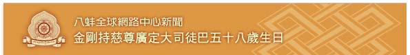 金剛持慈尊廣定大司徒巴五十八歲生日 金剛持慈尊廣定大司徒巴五十八歲生日,藏曆第一個月第八天,今年是3月13日。由於慈尊廣定大司徒巴的閉關將持續至下個月,因此今年的生日活動慈尊廣定大司徒巴並沒有參加。今年的生日活動自早上由八蚌智慧林所有僧俗眾修誦長壽祈願文,至下午則舉行了一個簡單的西式宴會,大家分享蛋糕、唱生日快樂歌,虔誠的祈願和回向慈尊廣定大司徒巴長壽駐世常轉法輪,佛行事業毫無障礙的圓滿昌盛,利益所有如母眾生,護持佛陀黃金念珠的傳承,直到第五佛彌勒佛駐世轉法輪。 世界各地的八蚌中心和各地的信眾,也懷著前承和感恩的心來慶祝上師慈尊廣定大司徒巴的生日。
