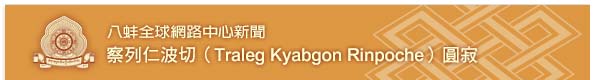 察列仁波切於2012年7月24日圓寂,他的圓寂對佛教來說是一大損失,尤其是對於噶瑪噶舉傳承以及他許多虔誠的弟子們。 金剛持慈尊廣定大司徒巴在閉關中接到察列仁波切的圓寂消息的當下,立即發送一封慰問信函,金剛持慈尊廣定大司徒巴並與親教師修法祈願,為了眾生的利益,察列仁波切能迅速轉世再來。 金剛持慈尊廣定大司徒巴也發表了一份正式的訊息給察列仁波切的僧眾們,鼓勵他們繼續他們領受自察列仁波切的實修與法教。 金剛持慈尊廣定大司徒巴也要求八蚌智慧林的僧眾為察列仁波切舉行49天的祈願修法和供養,兩個閉關中心也同時祈願迴向察列仁波切乘願再來。