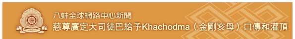 應堪布洛登及其八蚌中心弟子們的請求,慈尊廣定大司徒巴於2012年10月27日至29日在八蚌智慧林法座給予Khachodma(香巴噶舉的金剛亥母)的開示、口傳及灌頂,來自世界各地的學員及堪布洛登,都深受金剛持慈尊廣定大司徒巴無量的慈悲所感動。