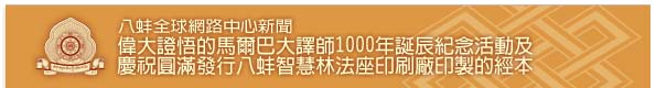 在佛教後弘期,馬爾巴是雪域八個實修傳承的先驅之一,是無數如星空中閃耀的偉大精神導師和實修者的源頭,也就是馬巴噶舉傳承的創建者,淬鍊不朽的噶舉黃金傳承。 馬爾巴大譯師於1012年出生於洛札的卓沃龍,父親是旺秋歐瑟,母親是佳莫莎都。 為了紀念馬爾巴大譯師1000年誕辰,在喜瑪洽爾的八蚌智慧林法座,在金剛持慈尊廣定大司徒巴的加持祝福下,在2013年1月21日至28日舉行了八天馬爾巴喜金剛本尊的修誦,以及精緻的薈供。 2013年1月27日,正式舉行偉大證悟的馬爾巴大譯師1000年誕辰紀念活動及慶祝圓滿發行八蚌智慧林法座印刷廠印製的經本,出席貴賓包括:金剛持慈尊第十二世廣定大司徒巴貝瑪東由寧杰旺波、賈傑康楚仁波切 (Garje Khamtrul Rinpoche, Jamyang Dondrub)、特別貴賓西藏流亡政府前任總理桑東仁波切 (former Kalon Tripa Very Venerable Prof. Samdhong Rinpoche) 、首席貴賓白瑪曲覺 (Kalon Pema Chhinjor)、演講人邊巴策林 (Penpa Tsering)、兩位噶舉議員和其他貴賓,以及來自喜瑪拉雅地區的信眾。 尊勝的 嘉華噶瑪巴鄔欽聽列多傑給予這項活動一份甚深的信息,主要貴賓們:慈尊廣定大司徒巴、桑東仁波切及白瑪曲覺也發表令人愉悅的演說,邊巴策林演說介紹馬爾巴大譯師的生平,桑東仁波切和白瑪曲覺則分別為圓滿發行八蚌智慧林法座印刷廠印製的經本活動致詞。 2013年1月28日,慶祝活動第二天,喜瑪洽爾省長 His Excellency Virbhadra Singh接受金剛持慈尊廣定大司徒巴以及八蚌智慧林法座僧團邀請,於上午十點抵達八蚌智慧林法座,並擔任當天的首席貴賓。 省長表示,印度有好幾個世紀古老而豐富的文化遺產以及精神信仰、和平及博愛的傳統,佛教誕生於印度,由於許多印度和西藏精神大師,例如馬爾巴大師,的努力而傳播至世界各地,而在今天物質為主的世界,人們欲求過多而失去內在的平和,因此佛陀和其他宗教精神領袖的法教,在今日更加相關而重要。由於佛法學者和實修者的共同努力,佛陀的法教已經達到世界巔峰。 金剛持慈尊廣定大司徒巴也在當天給予甚深的演說。 之後,特別貴賓Prof,Dr. Lokesh Chandra以影片方式致詞參與活動,他是現代佛教及印度藝術學者,也是著名梵文學者 Raghu Vira之子,目前是印度聯邦文化關係委員會副主席,印度歷史研究委員會主席。 當日出席的貴賓還包括:Vidya Stokes (水利和公共衛生部長)、Sudhir Sharma (都市發展部長)、MLAs Kishor Lal and Yadvinder Goma、T G Negi (首長顧問)、J C Chauhan (首長主要秘書)、C Palrasu (Kangra副執行長)、Balbir Singh Thakur (Kangra警察局長) 以及其他資深官員。 這兩天的活動還有由八蚌僧伽學校的學生演出的舞台劇,描述馬爾巴大師的一生及西藏和印度的歌舞表演,在金剛持慈尊廣定大司徒巴的加持祝福下,偉大證悟的馬爾巴大譯師1000年誕辰紀念活動及慶祝圓滿發行八蚌智慧林法座印刷廠印製的經本活動,在法喜充滿下圓滿完成,迴向利益所有眾生獲致佛果及宇宙和平。
