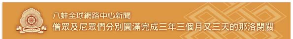 2014年藏曆木馬年新年的第一天,即2014年3月2日,共30位僧眾及14位尼眾分別在八蚌智慧林法座的男女眾閉關中心圓滿完成三年三個月又三天的那洛閉關。