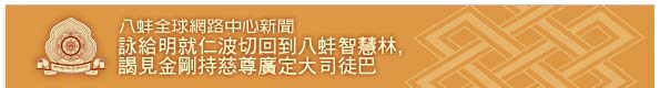 2015年11月10日非常殊勝的日子, 詠給明就仁波切在他長期遺世獨立的閉關之後, 回到了八蚌智慧林法座, 跟隨過去偉大噶舉上師, 像密勒日巴, 的腳步在一些神聖的洞穴閉關超過四年的時間, 詠給明就仁波切回到八蚌智慧林謁見他的上師, 金剛持慈尊廣定大司徒巴 ~ 偉大的馬爾巴大譯師 (2012) 的轉世, 岡倉噶舉的守護者, 及有三百年歷史的無教派分別的八蚌 (卓越之峰) 學院的創建者。 這次的謁見, 詠給明就仁波切向金剛持慈尊廣定大司徒巴獻傳統的曼達供養, 以及身口意的供養。 金剛持慈尊廣定大司徒巴也按傳統歡迎詠給明就仁波切, 在兩位上師之間展現著甚深的喜樂, 讓在場所有人都聯想起將近1000年前, 馬爾巴和密勒日巴會面時相同的加持。 八蚌基金會在主寺大殿向詠給明就仁波切舉行傳統的獻曼達儀式, 隨後, 八蚌智慧林法座的所有僧尼眾, 來自鄰近地區的信眾, 以及來自其他國家的信眾, 也在八蚌智慧林法座, 領受了詠給明就仁波切給予的加持祝福, 當天在充滿加持和祈願中吉祥圓滿。