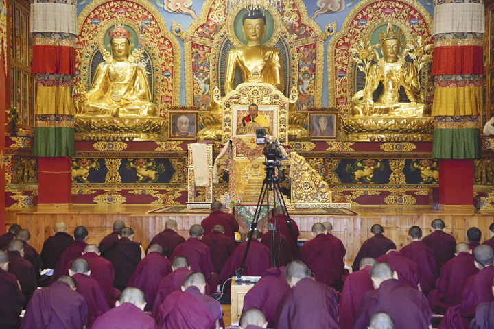 八蚌耶喜讓傑林尼寺位於靠近古盧塔 (Kuluta) 的地帶。古盧塔是勝樂金剛的聖地,是金剛乘佛法中的二十四聖地之一及三十二聖跡之一。從十一月初開始,上師金剛持第十二世慈尊廣定大司徒巴應八蚌尼寺師生的請求,只要時間允許就不斷地給予了關於恢復清淨三乘戒律新日修修法的講法開示。這一修法是應一些弟子的祈請,上師金剛持於近日撰寫的。上師金剛持給予全體尼眾僧團這一修法的口傳,並教導了三乘戒律、如何守持三乘戒律及如何恢復違損的戒律。三乘戒律即包括別解脫戒,菩薩戒,及密乘三昧耶戒。