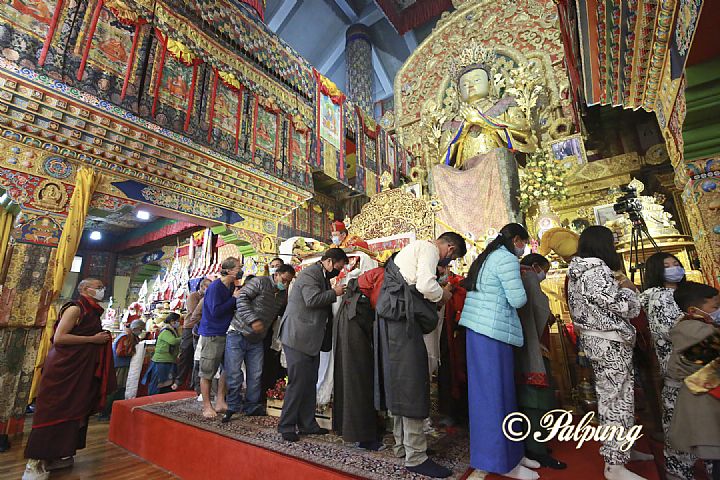儀軌圓滿後,安居在寺院的僧眾和信眾按照傳統的座位安排,按行入座。 隨後,上師金剛持慈尊廣定大司徒巴蒞臨,和大眾一起享用了茶、甜米和其他傳統食物的吉祥喜宴。最後,上師金剛持為參加者們一一賜予了祝福和加持,圓滿了雌鐵牛年吉祥歡喜的新年慶祝活動。