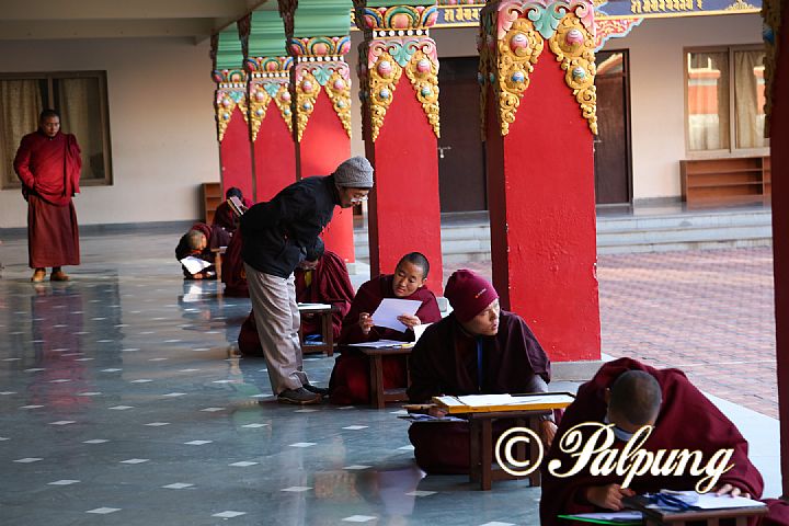 八蚌佛教科學大學的學生們在全體教師們的監督和指導下圓滿完成了本年度的課程。這些教授師們除了掌握一般性的佛教科學, 尤為精通語法學、詩學、醫學和星象學。2021年12月27日至2022年1月10日,所有學生參加了藏文語法的筆試和口試,考試內容基於《司徒教言》和其他語法與拼寫方面的根本頌文與釋論。醫學生們進行了關於論說醫典(四部醫典之一)的本頌和釋論方面的筆試、口試及繪圖考試; 星象學的學生們則是關於星象系統的一般知識及其實際運用、日月星辰相關的天文事件的演算、編撰日曆的方法上的筆試, 以及星象和占卜方面根文頌文的口試。梵文文憑課程預備班的學生參加了一些藏文語法根本頌文和釋論上的筆試和口試,以及藏文書法考試。這期考試還包括了醫學、星象學和語法學上難點的測試。