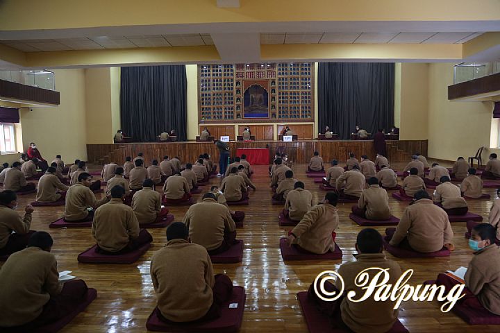 學生們在密續學院教師們的面前通過背誦藏文文法根本頌文、日常念誦文與祈請文分別進行了口試考試,從而圓滿了本次年度考試。