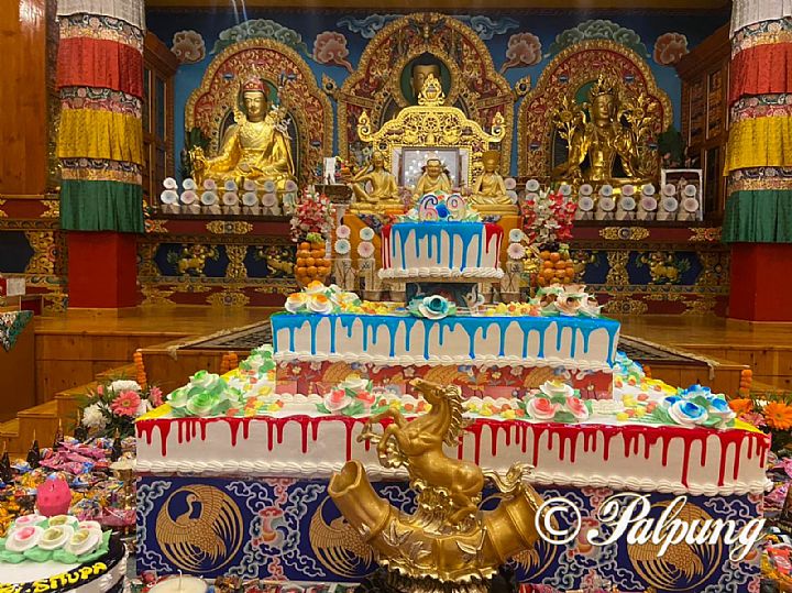2022年3月10日標誌著上師金剛持第十二世慈尊廣定大司徒巴色身於此世間從誕生至今,示現了69載。一早,八蚌耶喜讓傑林尼寺的堪布、喇嘛們、維那師和戒律師等, 以及寺院社區全體即進行煙供修法,開始了上師的生辰慶典,隨即向上師金剛持的法座獻上了代表佛陀身語意的所依物及曼達,接著現場所有信眾分享了傳統的茶與甜米,最後,以現代的生日蛋糕、唱誦吉祥祝願圓滿了上師金剛持的生辰慶典。
