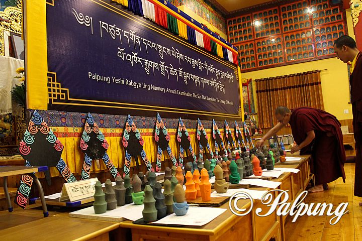通過八蚌耶喜讓傑林尼寺師生的共同努力,本年度修法儀規的專項課程傳授已圓滿完成。隨後,從 2022 年 6 月 18 日起,在尼寺堪布、工作人員和專項教師的嚴謹監督下,尼寺進行了為期六天的年度修法儀軌考試。考試內容包括背誦日常修法和常規法會的儀軌程式,製作朵瑪和朵瑪飾物及其安置,以及吹奏各種法器,如白海螺、嘉令號、長角、骨喇叭、鼓和鈸。
