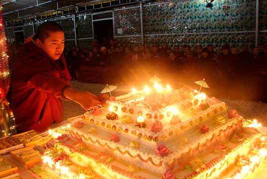 On 14th Febuary,2008 Palpung Sherabling Monastic Seat celebrated the 55th Birthday of Kenting Tai Situpa while Kenting Tai Situpa Rinpoche visited Bodhgaya, India. Rinpoches, Lamas, Monks, Nuns and lay devotees made prayers and offerings of a traditional ceremony which included a beautiful gigantic western-style cake which was decorated by the host, , in front of a photograph of Kenting Tai Situpa. Various participants also made offerings of song in different languages. The presiding Rinpoche for the birthday celebration at Palpung Sherabling Monastic seat was the Venerable Shagam Rinpoche who led the celebration with moving devotion.