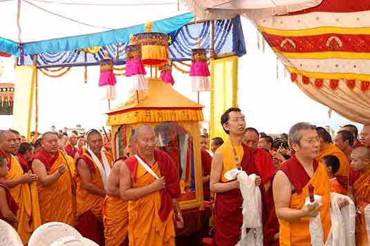 Palpung Sherabling Administration sent Khenpo Gyaltsen Phuntsok along with several other senior monks, to Dzongzar Khyetse Choekyi Lodroe Institute on June 5th, 2008 to make offerings during the cremation ceremony of V. V. Khenchen Kunga Wangchuk Rinpoche’s holy body. The representatives of Palpung Sherabling Monastic Seat also made Mandala offerings to H.H. Sakya Trizin Rinpoche during the ceremony as well as to all the participating Sangha. Thousands of devotees from various countries paid their final respects to the late Very Venerable Khenchen Kunga Rinpoche.