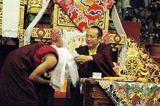 On the afternoon of June 29th, the results of the Palpung Sherbaling School annual exams were announced. On that day, all the Rinpoches, Khenpos, monks, local people and some foreigners gathered for this function knowing that Kenting Tai Situpa would be present. The announcing of the School results began at 2:30 p.m. where Kenting Tai Situpa presented gifts to students who had scored the highest grades. This was a great blessing and encouragement for the school monks to receive these honours directly from Kenting Tai Situpa himself. Afterwards Kenting Tai Situ Rinpoche gave advice on the meaning of education and wished all the school monks to have access to more education in future.