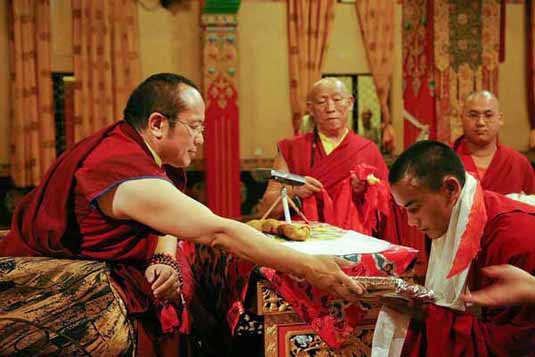 On September 3rd young monks of Palpung Sherabling Monastic rituals students received the results of their yearly exams from Chamgon Kenting Tai Situpa. These monks also study Tibetan Grammar, Poetry and Tibetan calligraphy. They received teachings from Gen Ati Sherab Nyima who is one of the most learned professors of Tibetan Literature alive today.