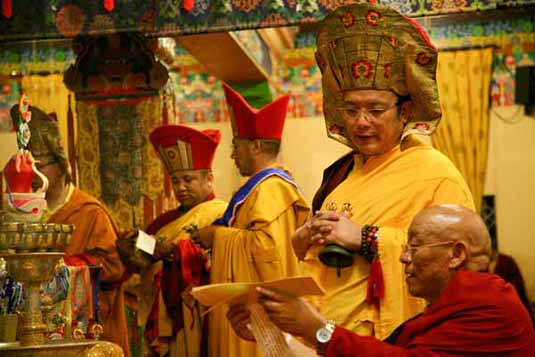 In the past few months the Palpung Sherabling Monastic seat Sangha who uphold the lineage and tradition of the scared and authentic Palpung ritual ceremonies has performed many grand Pujas and Yidam practices of the Marpa Kagyu Lineage. The Drupchen for each Yidam was ten days long. The most recent ten-day Drupchen, from April 13-22, was that of Dorje Sempa. Chamgon Dorje Chang Kenting Tai Situpa conducted and consecrated the Drupchen on the first day. Vajrasattva (Dorje Sempa) is the crown Buddha of all Buddhas and manifests to purify all levels of negativity and karmic debt. He is the manifestation of the purity within each and every one of us. Thus through the blessing of Buddha Dorje Sempa (Vajrasattva) it becomes possible to manifest this within ourselves when the time is right.