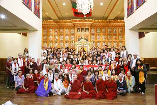 Dharma Centers in Taiwan and where he provides regular instruction and guidance for students. However he also made clear to his students that the refuge ceremony and important lineage transmissions must be received directly from Vajradrara Chamgon Kenting Tai Situpa. Since the Chamgon Tai Situpa is the root Guru for the whole Palpung congregation, Ven Khenpo La started bringing groups of his students to Palpung Sherabling Monastic Seat last year, to receive various and teachings and transmission of the Lineage. This year from September 22-24, for three days, Chamgon Kenting Tai Situpa generously gave a detailed transmission on the Aspiration Prayer of Mahamudra by Third Gyalwang Karmapa Rangjung Dorje at the request of Ven Khenpo Lodhen La. At the same time the Palpung Study Group from Ireland lead by Ani Choedron also joined along with some other students from different places. Following this teaching Tai Situpa Rinpoche returned to his ongoing retreat.