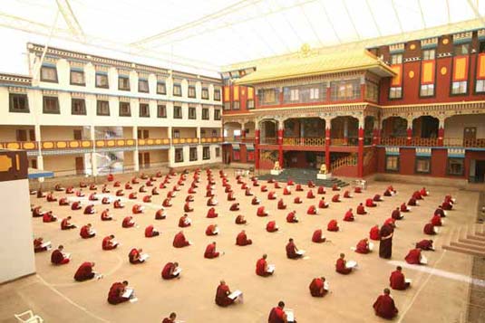 The 200 young Puja monks of Palpung Sherabling Monastic Seat study many subjects in addition to receiving a ceremonial education. They regularly study six different classes including Tibetan calligraphy, Grammar, Poetry and ancient Sanskrit calligraphy, for which they sat exams on October 8th to 11th for 4 days.