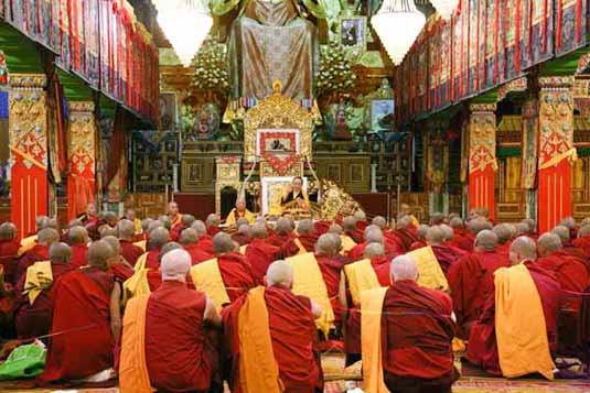 People who become monks and nuns often see their ordination as the most important event in their lives. Additionally most regard it as even more fortunate if they receive these vows from one of the precious lineage masters of the golden rosary. To this end many sangha from His Eminence Jamgon Kongtrul Rinpoche's monasteries in Nepal and Lawa , many sangha from the Very Venerable Mingyur Rinpoche's monasteries in Bodhgaya and Nepal as well as various people from around the world, came to Palpung Sherabling Monastic seat to receive ordination recently. In total, 110 young monks received novice ordination and 5 nuns also received novice ordinations. 95 monks received full ordination making a total 210 fortunate individuals who received ordination from the Vajradhara Chamgon Kenting Tai Situpa on December 30, 2010.
