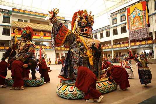 On March 3, 2011 the elaborate Mahakala Lama dance was performed following several days of Mahakala Puja conducted by the 550 monks of Palpung Sherabling Monastic Seat. These activities marked the end of the 2010 lunar year and prepared the welcoming of the new lunar year in 2011. Vajradhara Chamgon Kenting Tai Situpa was joined by an honored guest that day, Her Excellency Rani Siabha who is a former member of Parliament in Delhi and also the wife of His Excellency Raja Vir Bhadra Singh Union Minister of Steel. The festivities also included dignitaries and many devotees from near and far who came to have the blessing of the sacred Mahakala Lama Dance. On March 4, 2011 the Red Vajra Crown ceremony with Long Life Empowerment was performed by Vajradhara Chamgon Kenting Tai Situpa at the main Monastery of Palpung Sherabling. This and the preceeding Mahakala Puja with Mahakala dance were dedicated to all humanity to have happy, healthy and prosperous lives; to become respectful responsible human beings who protect wild life and the environment, and who are peace loving. Above all it was dedicated to a successful spiritual journey for each individual life according their respective faith. May this very happy New Year of the Female Rabbit bring all sentient beings closer to fully awakened enlightenment.