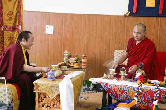On June 26th, 2011 Chamgon Kenting Tai Situpa visited Gyuto monastery and made long life offerings to His Holiness Gyalwa Karmapa Orgyen Trinley Dorje's 25th Birthday celebration. Following the offering the two shared lunch together.