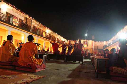 August 3rd, 2011, commemorates the day when Lord Buddha turned his first the wheel of Dharma and spoke the Four Noble Truth to his five companions at Varanasi India. On this day the Palpung tradition is to appoint new Khenpos, Lopons, Discipline masters and other staff at the Monastic College (Shedra) Lungrig Jamphel Ling. Selected monks will teach on Buddhism, while some will debate as well as lighten thousand the butter lamps. This year there are no new Khenpos (abbots) or Lopons (masters), so only the evening religious program took place at 7:00 pm with Venerable Pongri Rinpoche, other Young Rinpoches, Lamas, Khenpos and sangha members of Palpung Sherabling Monastic Seat. This year four monks gave short teachings on different Buddhist topics, followed by a debate. The new discipline master and the new assistant discipline master for the Shedra were appointed by Vajradhara Chamgon 12th Kenting Tai Situpa.
