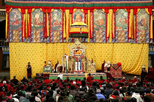 On the auspicious date of February 21st 2012, being the day before Tibetan New Year (Losar), Chamgon Kenting Tai Situpa graciously bestowed the annual Red Vajra Crown Ceremony and Long Life Empowerment of Buddha Amitayus to the assembled ordained Sangha and lay devotees. Through the blessings of these sacred ceremonies all negativities and obstacles are pacified while good and auspicious conditions are created for the benefit of all beings. May the power of these precious blessing waves radiate goodness throughout the entire universe and beyond.
