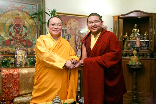 His Eminence Jamgon Kongtrul Rinpoche and his entourage paid a visit to Delhi following his Bodhgaya Monlam. They came to see Chamgon Kenting Tai Situpa at his residence on the morning of January 9th 2013, where they had lunch together and spent several joyful hours in each other's company.