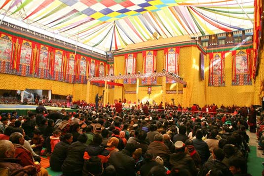 In the later period of the spread of Buddhism in the land of snow, Guru Marpa Lotsawa was one of the eight pioneers of the Practice Lineages, the source of the countless stars of spiritual masters and practitioners in space, the founder of the Kagyu Tradition of Guru Marpa Lotsawa – that is, the stainless refined gold of the Kagyu tradition. In 1012, the great enlightened translator and founder of the Marpa Kagyu lineage was born to the family of Marpa at Drowo Lung in Lhodrak Chukyer. His father was Wangchuk Oser and his mother was Gyamo Sa dhode. To commemorate the 1000th birth anniversary of the Great Supreme Lord Marpa at the Palpung Sherabling Monastic Seat in Himachal Pradesh, a Yidam of Marpa "Hey Vajra" puja was held and an elaborate feast offering was conducted under the blessing of Guru Vajradhara Chamgon Kenting Tai Situpa over eight days from 21 – 28 January 2013. On 27 January 2013, there was the commemoration of the 1000th year since the birth of the great enlightened translator Marpa Lotsawa and celebration of the successful publication of the complete scriptures printed by Palpung Printing House of Palpung Sherabling Monastic Seat. The function was held in the presence of the 12th Guru Vajradhara Chamgon Kenting Tai Situpa, Pema Donyo Nyingche Wangpo, along with Garje Khamtrul Rinpoche, Jamyang Dondrub, former Kalon Tripa Very Venerable Prof. Samdhong Rinpoche as Special Guest, Kalon Pema Chhinjor as Chief Guest, Penpa Tsering as speaker, Two Kagyu Chithue and dignitary guests, as well as an assembly of devottees from the Himilayan region. There was a profound message by His Holiness Gyalwang Karmapa Ogyen Trinley Dorje and very delightful speeches were delivered by Guru Vajradhara Chamgon Kenting Tai Situpa, the former Kalon Tripa Very Venerable Prof. Samdhong Rinpoche and by Kalon Pema Chhinjor. The opening of the life story told of Marpa Lotsawa was conduct by Penpa Tsering as speaker. The opening of the publication of the complete scriptures printed by Palpung Printing House was done by former Kalon Tripa Very Venerable Prof. Samdhong Rinpoche as Special Guest and Kalon Pema Chhinjor as Chief Guest. On 28 January 2013 which was the second day of the celebrations, at the invitation of Guru Vajradhara Chamgon Kenting Tai Situpa and Palpung Sherabling Monastic Sangha, Himachal Pradesh Chief Minister His Excellency Virbhadra Singh arrived at 10 o’clock in the morning to Palpung Sherabling Monastic Seat as the Chief Guest. The Honorable Chief Minister said that India has centuries of old, rich cultural heritage and a legacy of spiritual faith, peace and universal brotherhood. Buddhism was born in India and with the hard work of numerous Indian and Tibetan spiritual masters like Marpa Lotsawa it spread worldwide. The Chief Minister said that in this materialistic world, people were aspiring for many things and losing their internal peace, so teachings of Lord Buddha and other spiritual leaders are more relevant today. He said that due to concerted efforts of Buddhist scholars and practitioners the teachings of Lord Buddha had reached the pinnacle of the world. A profound speech was made by Guru Vajradhara Chamgon Kenting Tai Situpa on this day. Further, there was a video message displayed from Special Guest Prof,Dr. Lokesh Chandra who is a contemporary scholar of Buddhism and the Indian arts. He is the son of the famous Sanskrit scholar Raghu Vira and has served as a member of the Indian Rajya Sabha, Vice-President of the Indian Council for Cultural Relations, and Chairman of the Indian Council of Historical Research. Among those who attended the function include Vidya Stokes (Irrigation and Public Health Minister), Sudhir Sharma (Urban Development Minister), MLAs Kishor Lal and Yadvinder Goma, T G Negi (advisor to Chief Minister), J C Chauhan (Principal Private Secretary to Chief Minister), C Palrasu (Deputy Commissioner), Balbir Singh Thakur (Superintendent of Police) and other senior officers. There was an opera performance over two days featuring the life story of the Great Marpa Lotsawa and traditional Tibetan and Indian musical dance performances by Palpung Riglam Kyedtsal School’s sangha students. By the blessing of Guru Vajradhara Chamgon Kenting Tai Situpa, the commemoration function of the 1000th birth anniversary of great spiritual enlightened master and translator Marpa Lotsawa (1012-2012) and publication of complete scriptures printed by Palpung Printing House at Palpung Sherab Ling Monastic Seat was completed full of blessings and joy to benefit all sentient beings to achieve Buddhahood and peace for all universes.