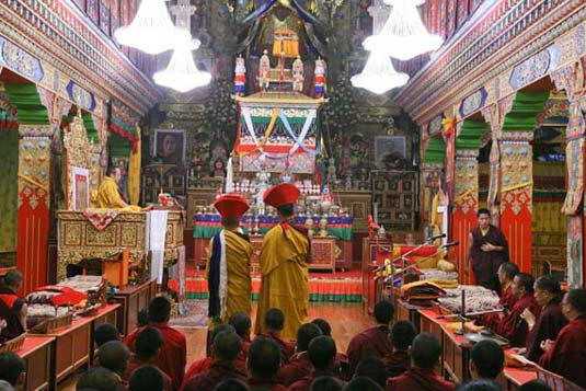 Every year many grand Drubchen pujas are organized, strictly following the manual as laid out by the 8th and 9th Chamgon Kenting Tai Situpa at Palpung Thubten Choekhor Ling Monastic Seat since more than three hundred years ago. The blessing and tradition of this unbroken lineage has been well established under the blessing of Guru Vajradhara Chamgon Kenting Tai Situpa at Palpung Sherabling Monastic Seat in India. The Dorje Sempa Drubchen was recently held and led by Rinpoches, lamas and monks for 10 days from 16th to 25th April 2013. At the end of this period, the Dorje Sempa empowerment was bestowed by Guru Vajradhara Chamgon Kenting Tai Situpa. The entire purpose of conducting the grand Drubchen ceremony is mainly dedicated to bring peace and harmony within the outer world and inner world of living beings. The prayers are dedicated so that all living beings may achieve their inner peace which is always ultimately perfect.