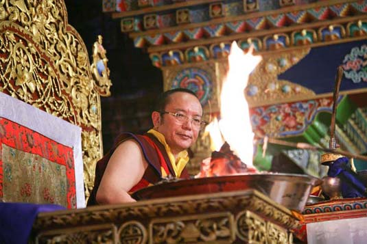 On 27th May 2013, the three-day Padma Vajra Puja began at Palpung Sherabling Monastic Seat in India. On 29th May 2013, in the presence of Vajradhara, the 12th Chamgon Kenting Tai Situpa, the Padma Vajra puja with Jangchog was mainly dedicated to all deceased sentient beings. In particular, each year many devotees around the world request prayers from Guru Vajradhara Chamgon Kenting Tai Situpa for their beloved family members who are deceased and it becomes a long list at the end of the year. The purpose of the three day Puja with Jangchog from Guru Vajradhara is to purify all the negativeness of those who have passed on by natural or un-natural, timely or untimely reasons and prayers are made that they may be reborn in a higher realm acquainted with the noble Dharma and achieve the ultimate liberation.