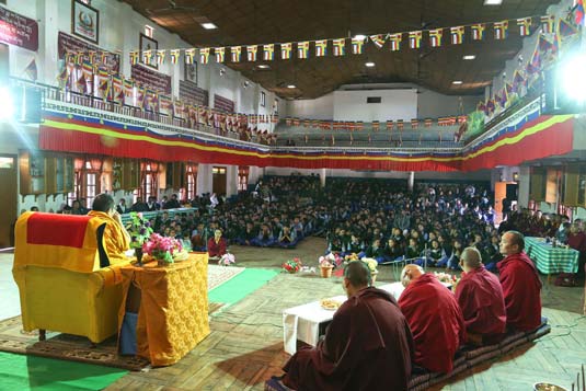 On the 21st of November 2013, a commemoration of the second year of all Tibetan schools focusing on dialectic training in Chauntra Tibetan School Village was held with an elaborate celebration and a demonstration of the students' talent in Buddhist philosophy. Following the request by the Principal of the School, Guru Vajradhara Chamgon Kenting Tai Situpa blessed the gathering and provided profound teachings on the importance of studying the entire teachings of the Buddha along with Buddhist sciences and modern science. In general, acquiring authentic knowledge of the Buddhadharma depends on the Samaya between teachers and students. Teachers have to have authentic lineage with the right intention to teach students consistent with the teachings of the Buddha. At the same time, students should have the right intention to listen and study the teachings of the Buddha with pure devotion to the teacher. Most importantly, teachers and students should both apply what they have learned from the teachings of the Buddha in daily life and spend time contemplating and meditating on the teachings regularly.