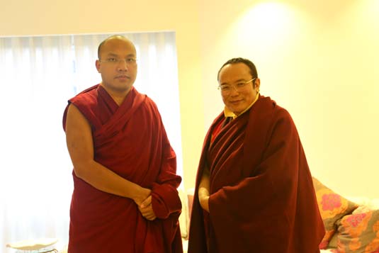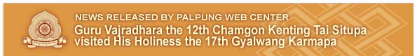 On the 21st of February 2014, Guru Vajradhara the 12th Chamgon Kenting Tai Situpa visited His Holiness the 17th Gyalwang Karmapa at the Hyatt Regent Hotel in Dehli after the 31st Kagyu Monlam in Bodhgaya and teachings in Dehli.