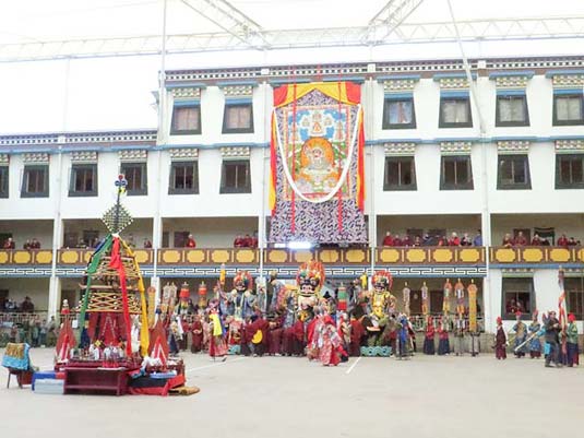 According to tradition, the annual grand Mahakala Puja and Mahakala Vajra Nyitham (lama dance) was conducted at the end of the lunar year. This year the Mahakala Vajra Nyitham (lama dance) was performed on the 27th of February 2014 without masks and according to tradition the actual Mahakala Vajra Nyitham (lama dance) was performed on the 27th of February 2014 at Palpung Sherabling Monastic Seat.