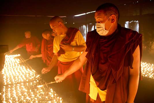 Guru Vajradhara Chamgon Kenting Tai Situpa spoke to the assembly of more than 400 members of sangha and international students at Tergar Monastery in Bodhgaya about Malaysian Airlines Flight 370 with 239 passengers. Guru Vajradhara requested everyone to make dedications and aspirations with a pure mind and pure attitude so that those who have died not to fall into the lower realms and instead be brought to liberation and omniscience and for the benefit of all the related families and friends currently going through great suffering. Special prayers were conducted at the main shrine hall at Tergar Monastery by sangha and international students and 10,000 butter lamps were lit at the Mahabodhi Stupa which were mainly dedicated to the passengers of the airplane and all those effected by the tragedy.