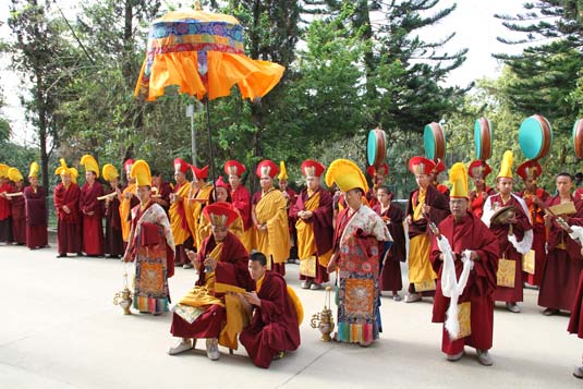 The Dorje Sempa Drubchen (the Vajrasattva Grand Puja) recently commenced as led by Rinpoches, lamas and monks for 10 days from the 6th to 15th April 2014. Every year many grand Drubchen pujas are organized, strictly following the manual as laid out by the 8th and 9th Chamgon Kenting Tai Situpa at Palpung Thubten Choekhor Ling Monastic Seat since more than three hundred years ago. The blessing and tradition of this unbroken lineage has been well established under the blessing of Guru Vajradhara Chamgon Kenting Tai Situpa at Palpung Sherabling Monastic Seat in India.