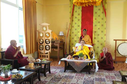 On the 10th of April 2014, at the request of Lama Karma Chodark, Guru Vajradhara Chamgon Kenting Tai Situpa visited and blessed the Kagyu Monlam’s event venue in Bodhgaya, Bihar.