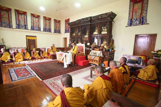 The lineage of full ordination (bhikku) is one of the most important transmissions starting from Lord Buddha Shakyamuni and existing up to the current respected ordained sangha of the entire Buddhist community. In relation to the Kagyu lineage starting from Lord Gampopa up to the current lineage masters, the pure lineage of ordination has continued and been passed on from master to disciple. On the 16th of March 2014, the day of Buddha’s Great Miracles, His Eminence the 4th Jamgon Kongtrul Rinpoche along with two Tulkus received the full ordination (bhikku) from Guru Vajradhara Chamgon Kenting Tai Situpa at the most holy place of Bodhgaya.