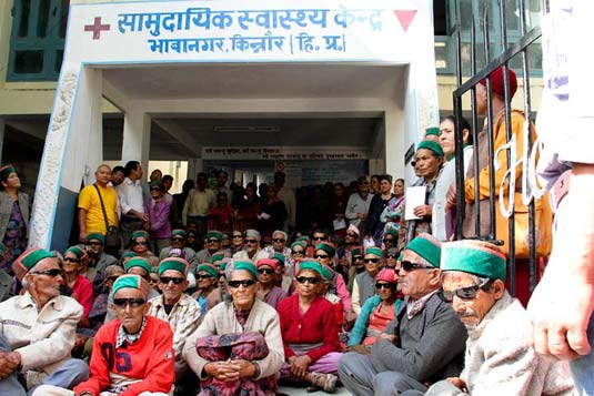 As organized every year with the permission from the Ministry of Health, Government of Himachal Pradesh, Palpung Munishasan Dharmachakra Sangh arranged a free medical eye camp at Bhabanagar Community Health Center(CHC) District Kinnaur in Himachal Pradesh, India from the 20th to 24th of July 2014. Lama Tashi Dhondup (head of Palpung Sherabling Health Center) travelled to the eye camp in Kinnaur with full support and a complete medical team from the Rotary Eye Hospital Maranda, Palampur Himachal Pradesh headed by Dr S.K. Sharma (Director), Dr Rohit Sharma (Eye Surgeon) and Dr Ashish Gupta (Eye Surgeon). The free medical eye camp of 2014 was completed as part of the continuation of the selfless activity of Guru Vajradhara Chamgon Kenting Tai Situpa. This year a total of 1052 people came for check-up at the free medical eye camp this year. Some patients needed lens glasses, some needed medicine and some needed operations. 350 patients received lens glasses and 68 patients had eye operations. All the required operations were done at Bhavanagar CHC.
