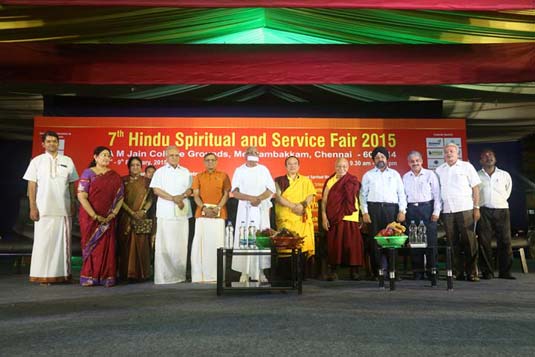 Rounding up his South Indian tour, Guru Vajradhara Chamgon Kenting Tai Situpa attended the 7th Hindu Spiritual and Service Fair 2015 in Chennai. Guru Vajradhara was requested to inaugurate the fair at the request of the Hindu Spiritual and Service Foundation. In his inaugural address, Guru Vajradhara Chamgon Kenting Tai Situpa spoke on the commonality of Buddhism and Hinduism. He also shared his views on the need of common active goals which were action oriented to foster and uphold human values and preserve our environment, regional and world peace and harmony.