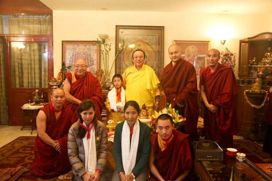 On the morning of the 5th of February 2015, the reincarnation of Very Venerable Bokar Rinpoche who was recently recognized by H.H. the 17th Gyalwang Karmapa had an audience with Guru Vajradhara Chamgon Kenting Tai Situpa and Very Venerable Bokar Yangsi Rinpoche made the traditional mandala offerings to Guru Vajradhara. V. V. Yangsi Rinpoche received blessings from Guru Vajradhara and also gifts such as a fine Buddha statue and some Texts. Palpung Labrang also made a mandala offering to the Very Venerable Yangsi Bokar Rinpoche which was followed with a traditional tea ceremony.