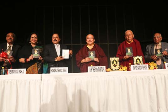 With the blessings of Guru Vajaradhara Chamgon Kenting Tai Situpa and extensive media coverage, "Mount of Excellence" the stylized documentary on the Palpung lineage and the Palpung Sherabling Monastic seat premiered at the prestigious Stein Auditorium, India Habitat Centre in New Delhi on the 9th of February 2015. The event was organized jointly by Prasiddha Foundation, Palpung Munishasan Dharma Chakra Sangh and The Habitat World. The evening began with sacred chanting by the Grammy Award winning monks of the Palpung Sherabling Monastic Seat. Following this, Smt. Prathibha Prahlad, who is the Founder and Managing Trustee of the Prasiddha Foundation provided the back ground to the event. This event also marked the Silver Jubilee celebration of the Prasiddha Foundation. She shared details of Prasiddha Foundation's long journey and its activities. Smt. Prathibha Prahlad also spoke about her long association with Guru Vajaradhara Chamgon KentingTai Situpa. After introducing and facilitating the special guests and speakers on the dais with bouquets and copies of the DVDs of the Mount of Excellence, the Producer of the documentary, DipnkarKhanna spoke a few words. He spoke about his long association of 25 years with Palpung Sherabling Monastic seat and his motivations to undertake this sacred task of producing this documentary with the blessings of Guru Vajradhara. In his thank you address Guru Vajaradhara reaffirmed his devotion and service to the lineage of The Tai Situpas. He thanked Prasiddha Foundation and India Habitat Centre for providing a very special maiden screening for the documentary. He also thanked the crew that was engaged in the making of this feature documentary, the film's Director Shivajee Chandrabhushan, the narrator Kabir Bedi and all other team members. The exquisitely packed DVD of Mount of Excellence was formally released by Guru Vajaradhara Chamgon Kenting Tai Situpa, Minister of State for North East Development Shri. Jitendra Singh, Professor Samdong Rinpoche, veteran lawyer and politician Shri. Ram Jethmalani, Smt. Prathibha Prahlad and the producer Shri. DipnkarKhanna. Samdong Rinpoche shared with the audience the rich tradition of Tibetan Buddhism and the antecedents of its purest form of translation of the dharma scriptures from the original Sanskrit. He also delved into how Buddhism travelled to Tibet through the efforts of both the Indian masters like Mahapandita Kamalashila and others from Nalanda and Vikramashila and the devout Tibetan spiritual masters who undertook the arduous journey to India to gather the seed of the precious dharma from India and plant them in Tibet. Professor Samdong Rinpoche spoke elaborately on the contribution of the Palpung Institution to Tibetan Buddhism and Buddhism in general and also on how the 9th Tai Situpa Pema Nyinjed integrated the Rimey practice of all lineages and continued this lineage and the current 12th Tai Situpa's activities on preserving and propagating the Buddha dharma. Prof. Samdong Rinpoche also encouraged the members of the audience to visit Palpung Sherabling Monastic Seat to understand the scale and magnitude of these activities. Professor Samdong provided important details of the role of the Tai Situpas in practicing, teaching and preserving the holy dharma in Tibet. He particularly singled out the 8th Tai Situpa who was adept in Sanskrit and who engaged and interacted with several Indian scholars to document Lord Buddha's doctrine in Tibet. The Minister of State for North East Development Shri. Jitendra Singh and Shri. Ram Jethmalani also spoke on important aspects of dharma and religion and expressed their heartfelt wishes. This was followed by the screening of the feature documentary "Mount of Excellence". The Stein Auditorium with a capacity of 430 seats was filled with some viewers spilling to the aisles. The movie was very well received by the capacity crowd. The event was covered by both print and electronic media like the Hindustan Times, Rajya Sabha and Lok Sabha channels among others. The event was followed by a small get together at the poolside deck of the India Habitat Centre.
