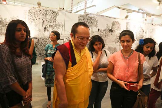 Guru Vajradhara Chamgon Kenting Tai Situpa along with Gegen la Lama Lode visited Bangalore after a period of nearly 18 years at the request of Dr. Geetha Narayanan Founder Director of Srishti Institute of Art Design and Technology and his disciple Dipnkar Khanna. The tour began on the 21st July. *** *** *** On the morning of the 22nd, July Guru Vajradhara Chamgon Kenting Tai Situpa accompanied by Gegen la Lama Lode lit the ceremonial lamp along with the Founder Director Dr. Geetha Narayanan and other members of the Board of Governors of Srishti. He then cut the ribbon to inaugurate the Srishti Collective an exhibition of the projects showcased by the final year students at Srishti. Here he interacted with all the students as they explained their ideas and how they had gone about executing their projects. *** *** *** On the afternoon of the July 22nd Guru Vajradhara Chamgon Kenting Tai Situpa visited the N% campus at Srishti when he met the Dean and Heads of the Centres and Labs and exchanged valuable ideas on innovation in creating new technologies that benefit users in sustainable and ecological ways. He cautioned on the trap of leaning towards lazy technologies and instead seeking new thought, ideas and unusual ways of applying innovation and creativity. This was followed by lunch with other VIPs after which there was a walk through the Open House showcasing the various Centres, Labs and which are engaged in Collaborations and Research within Srishti. Guru Vajradhara spent time to understand the exhibits at each Centre of the Open House exchanging ideas and thoughts with their Heads. *** *** *** In the evening of the 22nd of July, Guru Vajradhara Chamgon Kenting Tai Situpa accompanied by Gegen la Lama Lode was invited by Dr. Dorjee Rabten, the Chief Medical Officer of the Men Tse Khang in Bangalore. Here he received a traditional welcome by the staff of the Men Tse Khang. At the request by Dr. Dorjee Rabten Guru Vajradhara spoke on practicing mindfulness and meditation in daily life. It was an interactive session mainly comprising around 75 Indians and Tibetans comprising of long-term patients and supporters of Tibetan Medicine in Bangalore. *** *** *** Guru Vajradhara Chamgon Kenting Tai Situpa accompanied by Gegen la Lama Lode at the request of Dr. Geetha Narayanan addressed the Governing Council and the Academic Council on July 23rd on the spiritual aspects of Leadership and Governance. He advised them on how to face the challenges that they would encounter in Srishti’s development as a premier Design Institute and in its growth trajectory. He stressed on the need to work with a pure motivation and prime aspiration to help others. *** *** *** Guru Vajradhara accompanied by his entourage of monks visited Drishya and special school for the financially challenged urban children run by the Ujwal Trust and Srishti. Here Guru Vjaradhara interacted with the children and the staff and at the request of the children offered prayers for their well-being. *** *** *** On 23rd of July, Guru Vajradhara Chamgon Kenting Tai Situpa along with Gegen la Lama Lode and monks from Palpung-Sherabling were invited at the Tibetan Youth Hostel in Koramangala. Hundreds of Tibetans lined up in joyous devotion to receive Guru Vajradhara. After a brief welcome and tea ceremony Guru Vajradhara spoke to the large gathering on the importance of Buddhist Philosophy in modern day times. He also reminded his gathered country men, women and the Tibetan youth to take pride in the fact that Tibetans are led by the unparalleled leader His Holiness The 14th Dalai Lama who is Bodhisattva Avalokiteshwara. *** *** *** On the evening of the 23rd of July Guru Vajradhara Chamgon Kenting Tai Situpa along with Gegen la Lama Lode and monks from Palpung-Sherabling were also invited for a formal dinner at the residence of Mr. Pradeep Kar the Chairman of Srishti’s Governing body. Here he had important conversations on development, active peace, ecology, sustainability and education. *** *** *** On the morning of the 24th July A group of over 50 Tibetan devotees comprising of men, women and children from Kollegal starting at 3:00am to seek blessings from Guru Vajradhara The 12th Chamgon Kenting Tai Situpa. They met Guru Vajradhara in his Malleswaram Guesthouse to seek his blessings. *** *** *** To enthusiastic applauding and standing ovation Guru Vajradhara the 12th Chamgon Kenting Tai Situpa delivered at convocation address at the Chowdiah Memorial Hall in Bangalore on 24th July shortly after 4:00PM. He congratulated the graduating students and urged them to work towards protecting the environment that has been adversely affected by some of the actions of previous generations. It was a high-energy speech that appealed to the young graduating students to use the 'awesomeness and coolness' to work towards generating meaningfulness ideas and methods to improve the lives of people in the world.