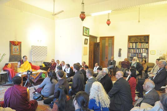 Guru Vajradhara Chamgon Kenting Tai Situpa agreed to a long time request from devotee Mr Rishi Jindal and family to give teachings at his house at Sunder Nagar in Delhi. The teaching was held on January 2, 2016. The teaching was mainly to highlight the importance of Global Environment awareness by each and every individual. The discourse format evolved into a free flowing question and answer interaction with Guru Vajradhara. For most of the time Guru Vajradhara engaged with the audience answering questions and clarifying on variety of subjects on philosophy, Dharma practice and personal life issues. These were graciously answered in depth by Guru Vajradhara. Everyone in the audience who joined the session were overwhelmed by the depth of the teaching. The evening ended with blessings from Guru Vajradhara for an auspicious start to the New Year of 2016.