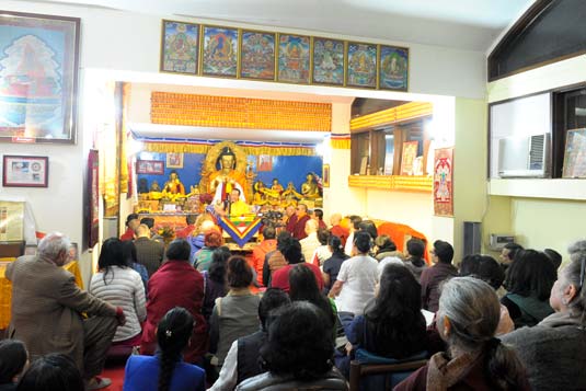 At the request of Tushita Mahayana Center of Lama Zopa Rinpoche in New Delhi, Guru Vajradhara Chamgon Kenting Tai Situpa gave an elaborate talk encompassing a bouquet of connected content related to evolution of environment, culture, education, society, religion, ideology, science and technology that are affecting mankind. He also advised on the responsibility of everyone to be aware and contemplate on the outcomes and the pros and cons in the Twenty First Century from our actions. The talk ended with Guru Vajradhara accepting questions from several participants. It was a joyous occasion for all who received words of wisdom and blessings from Guru Vajradhara at the start of year 2016.