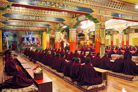 The grand annual Mahakala ceremony and puja began at Palpung Sherabling Monastic seat on January 30, 2016 in accordance with the lunar calendar on 21st day of the last month of Wood Sheep year according to the Palpung Tibetan calendar. This grand annual Mahakala ceremony is performed to mitigate and remove all the obstacles from the out-going year and generation of fortunate circumstances in the coming New Year. It is to bring in all auspiciousness without any hindrances and obstacles by invoking the blessing of all Dharma protectors for the benefit of all beings and for the protection of the Environment around our world. At the same time these prayers to Lord Mahakala invokes more productive conditions and situations in this Fire-Monkey New Year which begins on 8th February 2016, to enable beings to practice all the virtuous actions that will benefit all sentient being and protect the Environment in which we all live. Ultimately this grand annual Mahakala prayer is performed to assist everyone to reach their final destination which is to become fully awakened with the nectar of primordial wisdom.