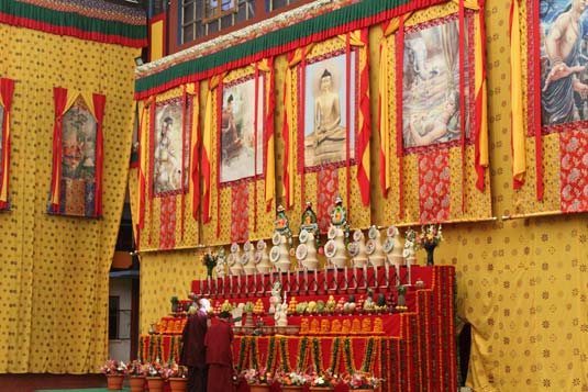 For the three days of celebration, ritual prayers were conducted based on the tradition of the Theravada, Mahayana and Tantrayana (Vajrayana), which were led by Tulkus, Khenpos, Lamas, Nuns and followed by all the venerable Sangha with elaborate offerings to Buddha. At the same time, teachings and transmissions on the three vehicles of Buddha's teachings were given by Khenpos. Other events of the celebration include discussion debates and presentation by students from various educational departments of Palpung Sherabling Monastic Seat.