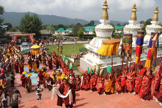 In 1966 by the great effort of 3rd Terchen Chokgyur Lingpa Pema Gyurme Gyatso and Jagoth Namgyal Dorjee had established Tibetan Khampa Industrial Society at Bir and Chauntra in Himachal Pradesh. 4th September 2016 is the 50th years (A golden jubilee) celebration of establishment and preservation of societies. On this very great occasion the organizer has requested Guru Vajradhara The 12th Chamgon Kenting Tai Situpa to bestow the blessing of Red Vajra Crown Ceremony and gave teachings on basic introduction of Buddha Dharma and gave transmissions of Refuge prayers , Mani mantra, and Benza Guru mantra. Around few thousand people were gathered and they perform the traditional dance of their region in Tibet and offer Long Life offering to the Guru Vajradhara The 12th Chamgon Kenting Tai Situpa.
