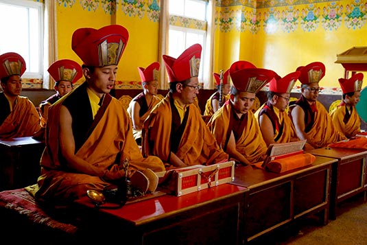 In Tibet nearly 300 years ago, the 8th Tai Situpa established a tradition of performing the Great Palpung Monlam prayer festival at Palpung Thubten Choekhor Ling Monastery in Tibet every year during the waxing period of the Month of Miracles (the first Tibetan month). This tradition continues to this day at Palpung Sherabling Monastic Seat in India. Starting on February 26 2018, the entire monastic community of Palpung Sherabling conducted a five-day prayer festival, which included an offering of 200,000 butter lamps and recitations of several aspiration prayers including the King of Aspiration Prayer. This monlam was dedicated to the welfare of all beings in general, to the living and deceased connected to the Monastic Seat, and to the continuing upholding of the Dharma. A special dedication was made to pacify obstacles to the Dharma such as the recent fire damage to the Jokhang Temple in Lhasa. On March 2, the lamas who had completed their three-year retreats recalled the life stories of the Kagyu masters of the past by chanting the Rain of Wisdom, a collection of dohas or spiritual songs of realization composed by the Kagyu gurus.